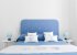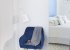 The final bedroom on the first floor is the Sorrento suite. To access the Sorrento suite, you continue through the corridor. The Sorrento suite has a double bedroom, air conditioning, a safe and an ensuite bathroom with a shower. The colours in the Sorrento suite are modern, bright and relaxing. The suite has its own terrace with a table and chairs so that you can sit back, relax and enjoy the blues of the sea and sky and the green of the Pine tree below.