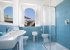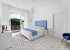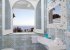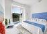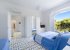 From the ground floor, to access the first floor, you need to ascend 19 steps. Here you will find five more bedrooms, all with air conditioning. The first room on the left is the Capri suite. Here there are two air-conditioned bedrooms which share a bathroom with a shower. The bathroom has wonderful ornate tiles which add to the character and Mediterranean feel. The Capri suite is tastefully decorated in white and blue with a seaside theme. One of the bedrooms has a small terrace with a sea view and the other has a Juliet balcony. The terrace has a table and chairs so that you can sit back, relax and enjoy the blues of the sea and sky and the greens of the trees and hills. There is also a safe.