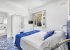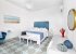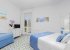 Off the main corridor, on the right-hand side, is the Ischia suite which has two double air-conditioned bedrooms. The bedrooms have a interconnecting door so prefect for a family with children. However, this door can also be locked if guests prefer. Both rooms have their own ensuite bathrooms with showers and also have separate access to the same terrace with outdoor furniture so that you can relax with a good book. The Ischia suite is tastefully decorated in white and blue with a seaside theme.