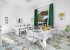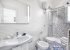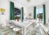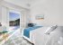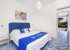 From the kitchen, on the ground floor, further along the corridor, you will find the Ravello suite which is a double bedroom with a double bed, air conditioning, a safe, a TV and a beautiful green and white ensuite bathroom with shower. The bedroom is modern and fresh; decorated in a blue and white nautical theme.