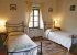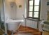 There are two large dual aspect double bedrooms, one a king size bed the other with twin beds (third single bed can be added at additional cost) and a full size cot bed. Both rooms have high ceilings with chestnut beams and solid wood floors. The large family bathroom comes complete with a lovely free standing slipper bath, separate shower cubicle and fabulous old marble sink.