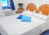 As you enter the apartment, you arrive in the open plan kitchen/lounge/diner. Here, there is a single sofa bed, a dining table with 6 chairs, a TV, air conditioning and a fully equipped kitchen. The kitchen has an oven, hobs, fridge/freezer, a kettle, a microwave and a toaster. From here, you can access the wonderful terrace. Off the corridor, there are two double bedrooms. Both bedrooms have air conditioning and a small window. One is a double and one is a twin but the twin beds can be joined to make a double bed (on request). There is also a bathroom with a shower, a toilet, a bidet. You will also have a small utility room with a washing machine, sink and ironing board and iron.