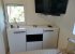 This is a completely new studio with a double bed 140 cm x 200 cm, and in the gallery a bed for 2 people with stairs and a protective mesh around, everything in the living room. There is TV, AC, fridge as well, dishes washing machine, kitchen with all supplies and equipment.