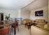 The living room benefits from air conditioning, three large leather sofas and a modern coffee table. There is Satellite TV with many English channels. Large glass double sliding door with views on to the pool and sunbathing area. Open plan living, dining and kitchen area.
