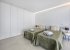 On the first floor there are two more bedrooms. A bedroom with a double bed (1.60 x 2.00) with en-suite bathroom and a large walk-in wardrobe, and a bedroom with two single beds (0.90 x 2.00) with an en-suite bathroom.