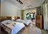 As you enter the main door the floor is tiled in the living and dining area, with large open windows facing the pool and lawn area. The living room and dining area is open plan to make the area as sociable as possible. The whole villa is bright and airy, with a warm colour to make the villa feel warm.
