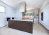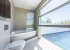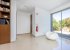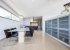 Upon entering the hall you walk straight into the spacious living room. From the living room, the glass wall offers views of the pool and the surrounding area. In the living room you will also find the dining table. The spacious kitchen has a cooking island with two chairs, microwave oven and dishwasher.