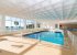 The indoor pool area is walked through to the main pool area. this is "sparse" but to walk through is acceptable.