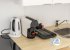 The spacious kitchen has essential appliances, including a stove, an oven, a microwave oven, a fridge, a water kettle, a coffee machine, etc.
