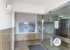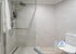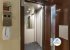 The bathroom with a modern shower cabin, a toilet and a sink.