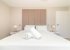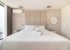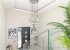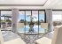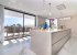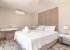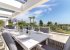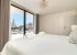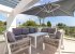 Upon entry to the villa you are greeted by a split level staircase which leads up to the living areas and down towards the bedrooms. On the first floor, the living space is completely open plan – living area, dining area and kitchen. The South facing wall has tall windows with sliding doors opening onto a vast terrace well equipped with outdoor dining area for 10 and another comfy seating area beneath a large parasol. The kitchen is well equipped and has a large breakfast bar, 4-ring hob, oven, microwave, American style fridge freezer, separate wine fridge and dishwasher.