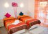 Your holiday apartment is on the second floor of the villa. It has only recently been completely renovated when it was equipped with all conveniences you might need for a comfortable stay. Thanks to its own separate entrance your privacy is guaranteed during your stay. The apartment offers a living-/dining area, a separate modern fully fitted kitchen, two bedrooms and two bathrooms. The bright and airy living area is furnished with sofa, digital flat screen satellite television, DVD and CD player and a dining table with four chairs. A wood fired oven provides a homely atmosphere and cosy warmth on cool evenings. The modern kitchen is complete with a Ceran cooktop and stylish stainless steel extractor hood, oven, fridge with freezer compartment, microwace, toaster, electric kettle and even a coffee machine. The master bedrooom is furnished with a 140 cm x 190 cm double bed, in the second bedroom you will find two 90 cm x 190 cm single beds that you can push together to make a double bed, both bedrooms have bedside tables with reading lamps and spacious chest of drawers providing plenty of storage space for your clothes and luggage. the two bathrooms has a large shower, both bathrooms offer a wash basin and wall mirror, hairdryer and a toilet. A bed for a baby and highchair are also available. Bed linen, a washing machine and reliable WLAN internet access is offered in your holiday apartment free of charge. If you like to use air conditioning- extra payment 5€/night.