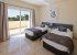 On the same level there are two bedrooms. Facing the pool terrace, there is a twin bedroom with fitted wardrobes, with an en-suite shower room, with washbasin and toilet. Adjacent is a double room with king-size bed, fitted wardrobes, ensuite bathroom (with bath), washbasin and toilet.