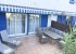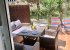 Enjoy the large private terrace overlooking the garden and pool, furnished with outdoor seating and a retractable awning — perfect for relaxing or dining outdoors. The terrace is accessible directly from both the bedroom and living room.