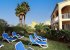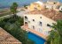 At the side of the villa, there is a large swimming pool and a solarium area as well as a small garden.