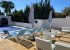 Outside, the villa offers a generous heated private pool surrounded by a sun terrace with loungers and shaded seating. A convenient outdoor shower is located next to the pool, and a nearby dining area is perfect for enjoying meals al fresco. The rooftop terrace provides sweeping views of the Mediterranean — an ideal spot for evening drinks or quiet reflection.