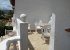 A first terrace with lounge area and a lower second terrace with large table and 8 chairs.