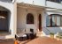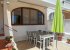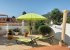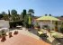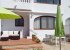 Garden with terrace, lounge set, sun awnings, table, 8 chairs, sun loungers, parasols, shower.