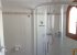 Bathroom with rain shower, sink, toilet, towel racks, hairdryer, heating and moisture extraction.