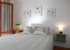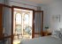 On the right, halfway through the living room is the door to the bedroom. This is spacious, equipped with a wide double bed, bedside tables, fitted wardrobes, a glass double door to the terrace and blackout curtains.