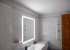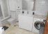 From the hall you go to the hallway, with the door to the bathroom on the right. The bathroom has a bath/shower, a toilet, a sink with drawers, an illuminated mirror, a washing machine, electric heating and a towel drying rack. It is brightly lit and has an automatic air extractor.