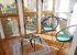 At the back right of the living room is the terrace, facing south with lots of light. It is covered and equipped with a large window in 6 parts, all in transparent double glazing. All parts can be opened completely, one of which can also be tilted. The lower windows are equipped with mosquito netting. Roller blinds provide privacy and an electrically operated sun canopy for shade. The heating is electric. Low chairs and a glass table make the terrace cozy. From the terrace you have a wide view outside at full height.