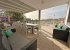 The spacious terrace overlooks a stunning pool area, offering breathtaking sea views.