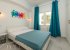 The open plan living area gives access to both the front and back garden areas, both with large terraces suitable for sunbathing, children's play area or eating in the covered terrace area. The kitchen has a dishwasher, electric oven and hob, microwave, coffee machine and kettle, the dining room has a table and chairs for 6 people and doors leading to the covered terrace, the sitting/TV room has access to the sun terrace and also the entrance of the villa. There are three bedrooms, one with bunk beds, one with a double bed (these both have air-conditioning), the third bedroom is down a couple of steps has a king size bed and en-suite shower with a washing machine and dryer. There is a further family shower room.