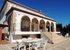 Swimming pool protected by a pretty balustrade with security access door for children.