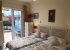 A curtain can be pulled across that separates the living room from the kitchen dining area, giving privacy to guests sleeping in this area. The living room also has it's own set of patio doors opening out on to the lower terrace.