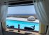 The living room has comfortable seating area with a large picture window framing the horizon and sea.