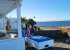 El salón tiene una cómoda zona de estar con un gran ventanal que enmarca el horizonte y el mar.