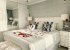 Rose petals on bed