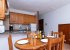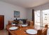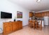 Upon entering the apartment, you are greeted by a delightful balcony that provides a relaxing pool view. Furnished with a patio table and chairs, it serves as a perfect spot for enjoying meals or simply unwinding. The balcony seamlessly connects to the lounge through patio doors. The cozy lounge features a double sofa bed, a wall-mounted flat-screen TV with English and international satellite channels, a wooden cupboard, and two side tables—one of which holds a wifi internet router. Additionally, a wooden dining table with four chairs allows for comfortable dining experiences.