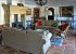 The living room has double doors opening on to the sunny back terrace and swimming pool.