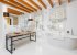 Contemporary European with a Mallorcan touch. The property has been featured in the Spanish interiors magazine 'Nuevo Estilo'. With brickwork walls, white and natural colors and stunning black and white photography on the walls, it is art-lover’s dream. Tom Ford books lie on the coffee table; the main bathroom has a gigantic Lee Jefferys painting and Herman Brood, Bettina Nuschei and Sabala paintings hang elsewhere. We love the airy spaces and the clean lines of the garden.