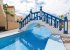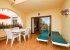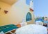 The master bedroom offers a haven of repose with its luxurious double bed, while the second bedroom accommodates three single beds, ideal for family or friends. Should a sixth guest join, an additional z-bed graciously awaits. This arrangement leaves the living area unburdened, providing a tranquil retreat for the adults to unwind.