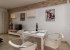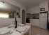 Enter the inviting living area through the patio doors, featuring a sofa bed, a single futon chair, and a flat-screen TV with an array of English and international channels. A convenient coffee table is also available for your use. Adjacent to the living space, you'll find a dining table and chairs, perfect for enjoying meals or planning your day's adventures.