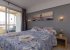 The inviting bedroom is furnished with a comfortable double bed, bedside tables with soft bedside lights, a chest of drawers, fitted wardrobes, and a ceiling fan to ensure a restful night's sleep. Patio doors in the bedroom open onto the balcony, allowing guests to wake up to the refreshing sea breeze.