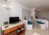 Upon entering, you'll find a cozy living area featuring a comfortable 2-seater sofa, a coffee table, and a flat screen TV with a wide selection of English and international channels. Adjacent to the living space, there is a charming dining area furnished with a table and two benches, providing ample seating for your meals.