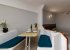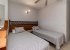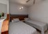 In the bedroom area, you'll discover two comfortable single beds, complete with a bedside table and bedside light for evening reading. For your comfort, a ceiling fan is installed, and there is a large mirror and fitted wardrobes for your storage needs.