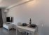 As you enter the lounge, you'll find a comfortable leather sofa and a flat-screen TV with a wide selection of English and international satellite channels. Adjacent to the lounge is a modern dining table with two chairs.