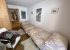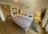 The main bedroom has a large and very comfortable modern (2.40 metre) bed with incorporated bedside tables and lighting. This room leads on to the east facing balcony with two comfortble chairs and wine table. There is a full en-suite bathroom, with bath and in-built shower.