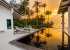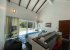 A fully-equipped island kitchen and adjoining dining area serve as a convivial communal space, again with views over the water. There is also plenty of outdoor space: the deck surrounding the pool with steps leading down to the landscaped gardens affronting the beach.