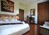 To the left of the walkway, two large, hard wood carved doors open up onto the extensive lounge and dining area. Take a left and you will come to the second bedroom known as ‘the orange room’. Tasteful orange and sunset red paintings adorn the walls and match the scatter cushions king-size bed. The room has a comfortable sofa as well as ample wardrobe space. The natural stone bathroom has a bath as well as a rain shower.