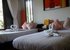 Another door from the dining area leads onto bedroom three. This has a king-size bed, sofa and is beautifully decorated with orange and burgundy tones.