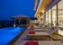 On arrival, you will enter on the ground level and step into an open plan deluxe gourmet kitchen and living area. To the right is a state of the art kitchen with all amenities, including a large cooking island fitted microwave, double oven etc and seating area, and to the left will see a generously sized living area with a flat screen TV, satellite channels, internet and sound system. These rooms open onto the sun deck and infinity pool complete with covered sala