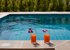The master suite is the largest room of the four, and offers direct pool access, as well as a 40” flat screen TV.