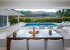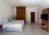 The layout of the villa is simple: all four bedrooms are accessed from this central space. One is behind the kitchen, a twin bedroom (two single beds); the other three (two with king-size beds, and one with queen-size bed) are located in a wing behind the lounge.