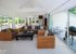 The architecture maximises space and natural light, with a large central living space bordered by windows on three sides that opens the area up to the garden, and a huge column-less verandah and pool deck.